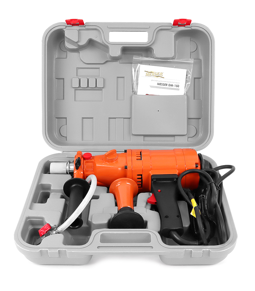 Messer DM-150 — профессиональная бурильная установка для алмазного сверления отверстий различного диаметра в бетоне, железобетоне, камне и кирпичной кладке. Модель отличается надёжностью, стабильной работой и рассчитана на использование как строительными подрядчиками, так и сервисными компаниями. Конструкция обеспечивает устойчивость при сверлении, а двигатель даёт достаточную мощность для выполнения задач разной сложности.