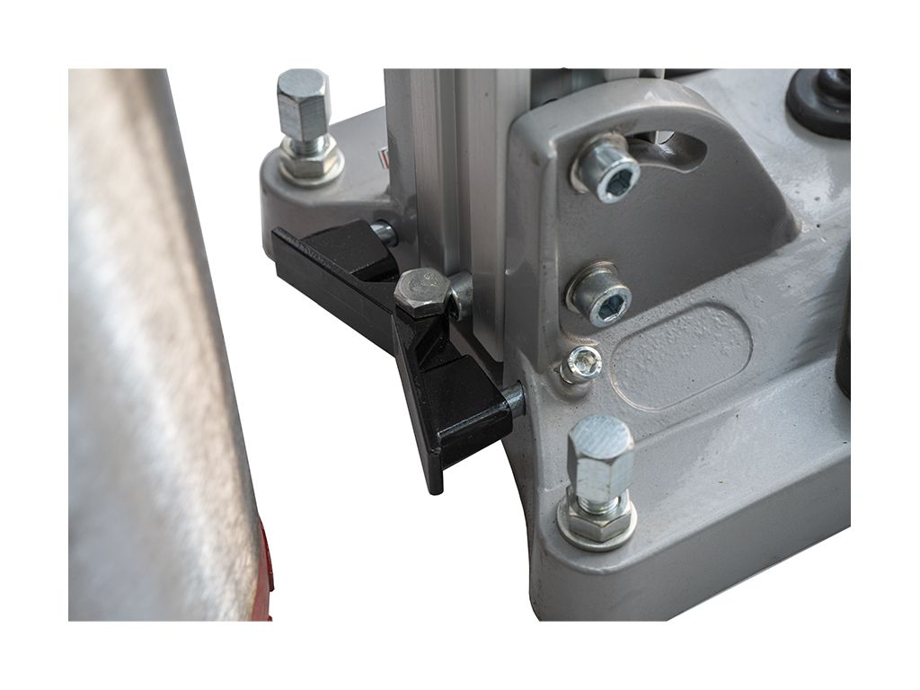 В данном наборе особенности представлены в различных элементах. Система плавного пуска и электронная защита от перегрузок обеспечивают безопасность и эффективность работы. Кроме того, есть упор-откос для увеличения жесткости, быстросъемное крепление мотора типа "ласточкин хвост" и роликовые направляющие каретки для удобного перемещения оборудования. В комплекте также имеется полностью металлический трехскоростной редуктор, который позволяет регулировать скорость вращения в зависимости от диаметра коронки.