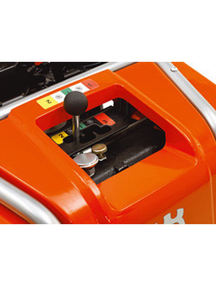Тахометр вала режущего диска позволяет оператору точно устанавливать нужную скорость вращения для выбранного размера диска. Диапазон скорости вращения вала диска имеет цветовую кодировку, соответствующую положению рычага передач Рычаг переключения коробки передач используется для изменения скорости на выходе коробки передач двигателя. Стандартом являются три передачи и два нейтральных положения. Положения рычага переключения передач имеют цветную кодировку, соответствующую диаметру режущего диска и маркировке скорости вращения вала диска на панели управления. Стопор рычага фиксирует положение рычага переключения передач. Заявленная на патент электрическая система контроля позволяет оператору проводить регулировки во время резки одним прикосновением к переключателю. Снижается утомляемость оператора и не требуется дополнительных инструментов. Запатентованная система силовой трансмиссии с правоугольной конфигурацией редуктора минимизирует вибрации и повышает эффективность шпинделя режущего диска Надвижной защитный кожух диска. Рукоятки (ожидается получение патента) легко регулируются, чтобы обеспечить оператору наиболее удобное положение для работы Швонарезчик HUSQVARNA FS 4800D имеет панель управления с датчиком температуры, амперметром, тахометром и переключателем муфты режущего диска. Заявленная на патент конструкция вала диска IntelliSeal (tm) имеет четыре герметичных радиальных подшипника для обеспечения жесткости и износостойкости. Интервалы между обслуживаниями составляют как минимум 500 часов, а ограниченная гарантия предоставляется на 1000 часов работы.