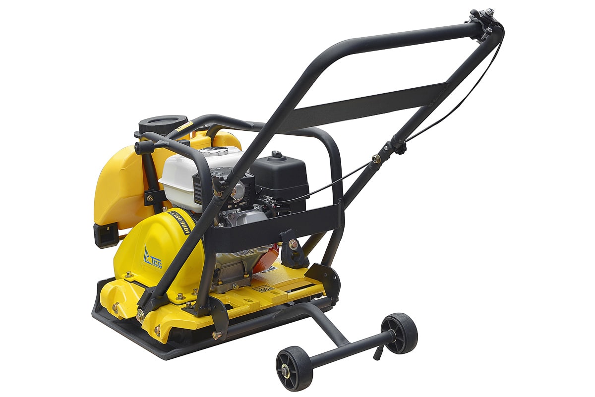 - Встроенные колеса облегчают перемещение виброплиты между рабочими зонами.