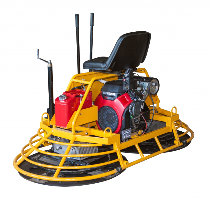 Машина для затирки бетона STEM Techno RPT37, оснащенная электростартером и бензиновым двигателем Honda GX 690 мощностью 24 лошадиные силы, предназначена для выравнивания больших бетонных площадей. Диаметр рабочей зоны составляет 1910 мм. Для обеспечения безопасности предусмотрена педаль аварийной остановки двигателя. Все функции управления машиной вынесены на рукоятки. Регулировка угла наклона лопастей с помощью винта позволяет осуществлять как черновую, так и чистовую обработку бетона. Вес оборудования — 386 кг.